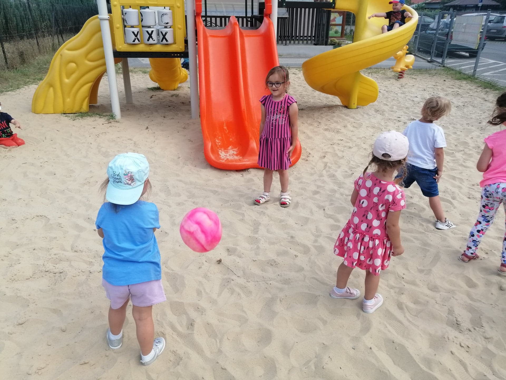 Zabawy na placu zabaw, na łące